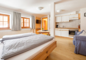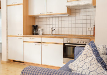 - Küchenzeile (Kaffeefiltermaschine, Toaster und Wasserkocher stehen bereit)
