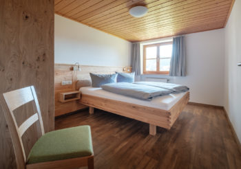 (2x Doppelbett, 1x getrennt stehende Betten) mit Zirbenholzwänden - Wohnraum