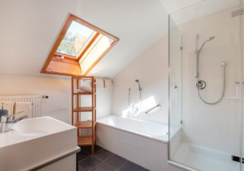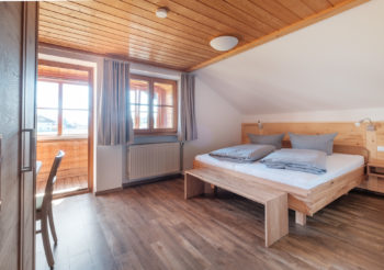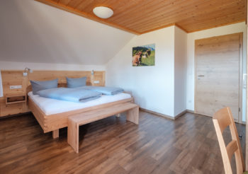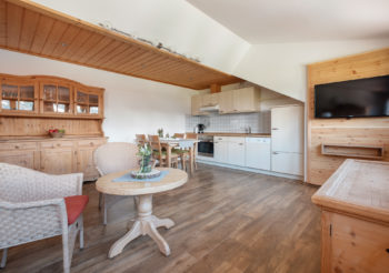 (jeweils mit Doppelbetten) mit Zirbenholzwänden - Wohnraum mit Küche (Kaffeefiltermaschine, Toaster und Wasserkocher stehen bereit)