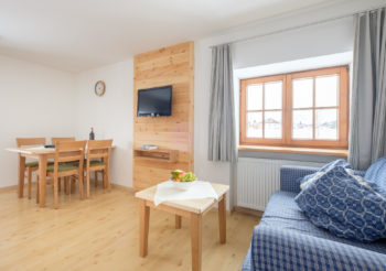 - Wohnraum mit Küche (Kaffeefiltermaschine, Toaster und Wasserkocher stehen bereit)